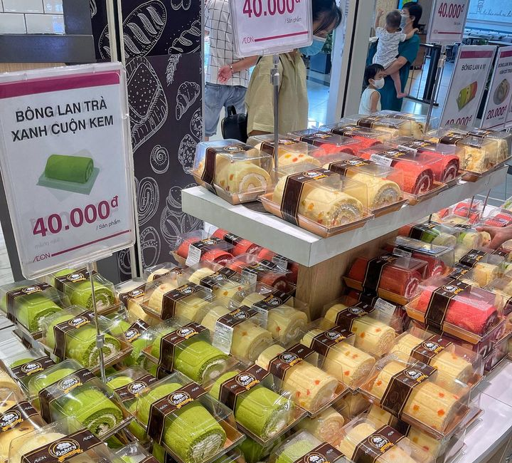 Chưa dừng lại ở đó, bánh kem tại Aeon Mall có giá cả rất hợp lý, chỉ từ khoảng 40.000 đồng, phù hợp với nhiều đối tượng khách hàng mà vẫn đảm bảo chất lượng thơm ngon. Ngoài bánh kem cuộn, Aeon còn cung cấp nhiều loại bánh kem với các nhân khác nhau, mỗi loại mang một hương vị riêng biệt, giúp người thưởng thức dễ dàng lựa chọn theo sở thích cá nhân.