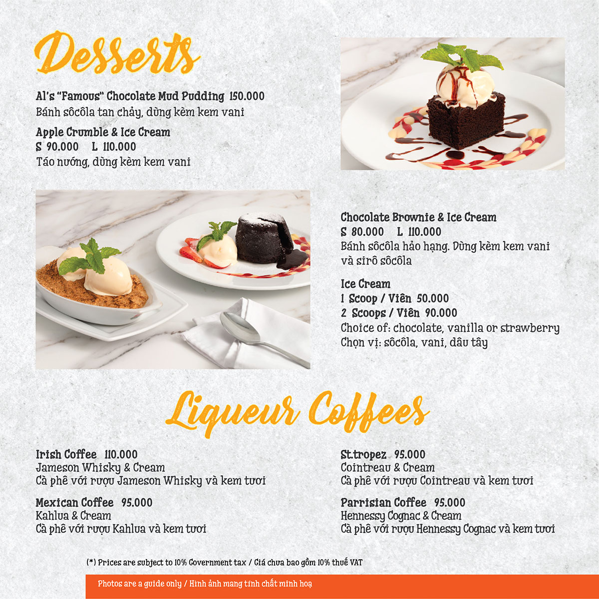Nhà hàng Al Fresco’s, một chuỗi ẩm thực nổi tiếng với sự kết hợp tinh tế giữa ẩm thực Á và Âu, đã có mặt từ năm 1996. Trải qua gần ba thập kỷ, Al Fresco’s đã khẳng định được vị thế của mình nhờ vào những món ăn đặc trưng như bít tết, sườn nướng, pizza và mì Ý, làm say lòng thực khách.
