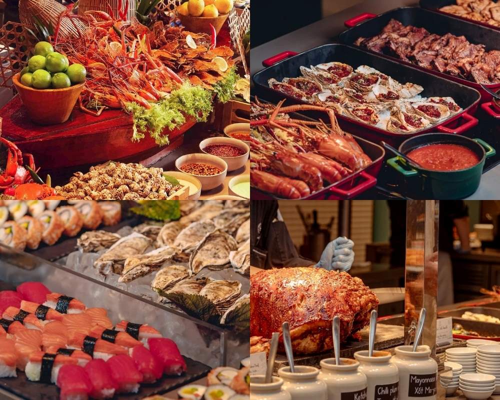Thành phố Hồ Chí Minh thật sự là thiên đường cho những tín đồ yêu thích buffet hải sản với vô vàn sự lựa chọn hấp dẫn. Tại đây, bạn sẽ tìm thấy những nhà hàng nổi tiếng như La Brasserie, Hoàng Yến Buffet Premier và The Grill Buffet. Những điểm đến này mang đến trải nghiệm ẩm thực đẳng cấp với thực đơn phong phú, từ tôm hùm, cua biển đến hàng trăm loại hải sản tươi sống khác. Không chỉ chú trọng vào chất lượng món ăn, không gian sang trọng và tinh tế của những nơi này cũng góp phần tạo nên những bữa ăn khó quên.