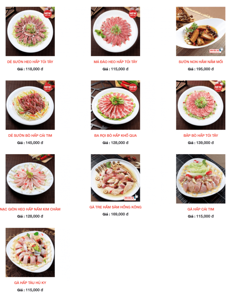 Nếu bạn thích thịt hấp, nhà hàng có lựa chọn đa dạng từ thịt heo, gà đến bò, với giá từ 115.000 đến 195.000 VNĐ. Đặc biệt, dimsum với nhiều loại nhân hải sản và thịt sẽ khiến bạn hài lòng, với mức giá từ 69.000 đến 98.000 VNĐ. Để cân bằng bữa ăn, rau củ hấp tươi ngon cũng có giá từ 38.000 đến 99.000 VNĐ.