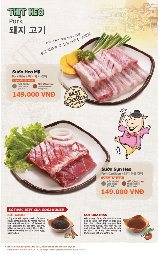 Gogi House nổi tiếng với các món thịt nướng như sườn non bò Mỹ, nạc vai bò Mỹ và dẻ sườn tươi. Với menu đa dạng, bạn sẽ có cơ hội thưởng thức một bữa ăn thịnh soạn và đậm đà hương vị Hàn Quốc. Đây thực sự là một dịp tuyệt vời để khám phá ẩm thực Hàn Quốc ngay tại Việt Nam.