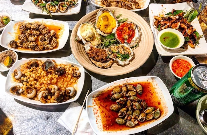 Nếu bạn là tín đồ của đồ ăn vặt, các món ốc như nghêu hấp Thái, nhum nướng mỡ hành hay tôm tít xào bắp rất được yêu thích tại Sài Gòn, không chỉ mang đến hương vị tuyệt vời mà còn làm phong phú thêm trải nghiệm ẩm thực đêm. Chắc chắn rằng bạn không thể bỏ qua món xôi, với hương vị dẻo thơm và béo ngậy từ nước cốt dừa, rất thích hợp để thưởng thức vào những đêm muộn.
