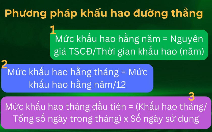 Để tính toán khấu hao lũy kế, người ta thường áp dụng công thức đơn giản: Khấu hao mỗi năm bằng (giá trị số sách ròng – giá trị còn lại) nhân với tỷ lệ khấu hao ước tính. Phương pháp khấu hao theo đường thẳng cũng được sử dụng để đảm bảo rằng chi phí khấu hao được phân bổ một cách đều đặn qua các năm.