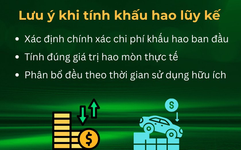 Khi hạch toán khấu hao lũy kế, có một số lưu ý quan trọng mà kế toán cần ghi nhớ. Đầu tiên, việc trích khấu hao phải tuân thủ khung thời gian quy định, nếu không, chi phí vượt quá sẽ bị loại khỏi chi phí được trừ khi tính thuế TNDN. Điều này có thể ảnh hưởng lớn đến tình hình tài chính của doanh nghiệp.