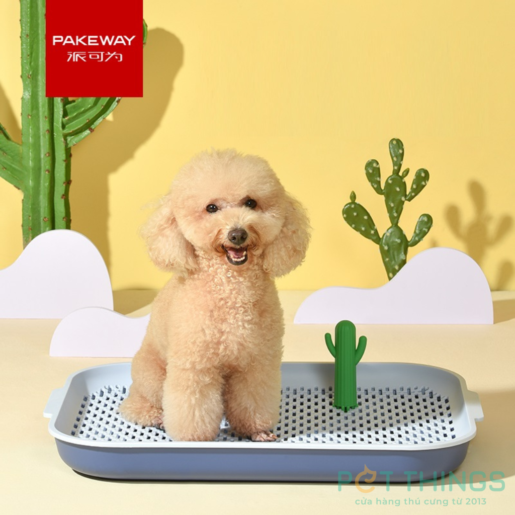 Những chiếc khay này thường làm từ nhựa cao cấp, bền bỉ, không độc hại, kích thước đa dạng như size L (63x48x6cm) phù hợp chó vừa và lớn. Thiết kế thông minh với trụ đứng (giống cây xương rồng dễ thương) và vách chống tràn giúp chó đực quen dần “nhắm đúng chỗ”, tránh bắn tung tóe.