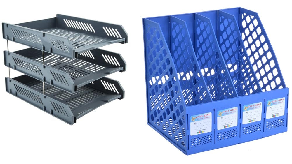 Các sản phẩm khay đựng hồ sơ được làm từ chất liệu nhựa cao cấp, bền bỉ và có khả năng chống va đập tốt. Ngoài việc giữ cho tài liệu của bạn luôn gọn gàng, khay còn có bề mặt nhẵn mịn, dễ dàng lau chùi và vệ sinh. Hãy tưởng tượng một chiếc kệ hồ sơ đứng 3 ngăn giá chỉ từ 52.000 VNĐ giúp bạn sắp xếp tài liệu một cách thông minh.