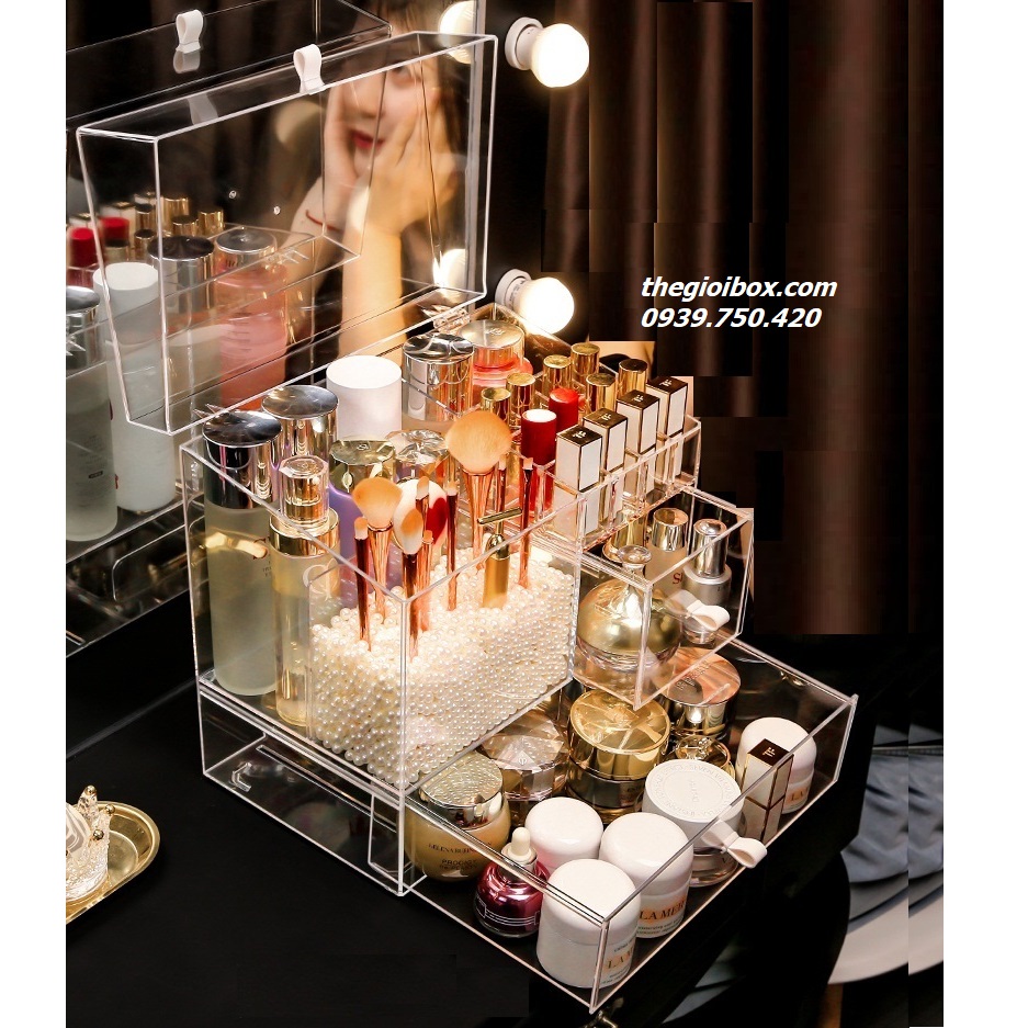 Nếu bạn đang tìm kiếm giải pháp hoàn hảo để tổ chức mỹ phẩm của mình, khay đựng mỹ phẩm thông minh chính là sự lựa chọn lý tưởng. Với thiết kế 360 độ độc đáo và làm từ chất liệu mica trong suốt, chiếc kệ này không chỉ giúp bạn dễ dàng tìm kiếm sản phẩm trang điểm mà còn mang đến vẻ đẹp sang trọng cho bàn trang điểm của bạn.
