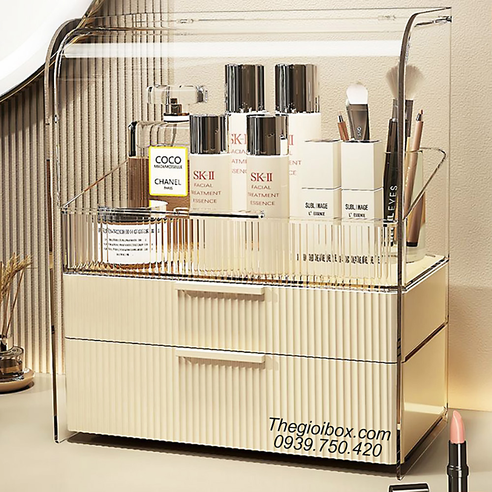 Các sản phẩm như kệ đựng mỹ phẩm 2 tầng hay hộp đựng mắt kính và trang sức cao cấp đều rất được ưa chuộng. Đặc biệt, khay có nắp chống bụi giúp bảo quản đồ trang điểm của bạn tốt hơn, giữ cho chúng luôn sạch sẽ và mới mẻ. Hơn nữa, với thiết kế nhỏ gọn, bạn có thể dễ dàng đặt trên bàn trang điểm hay trong vali khi đi du lịch.