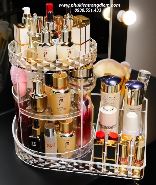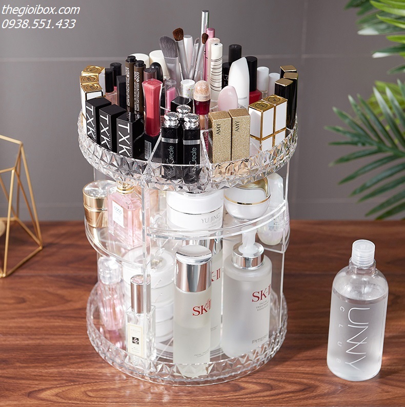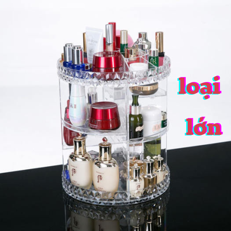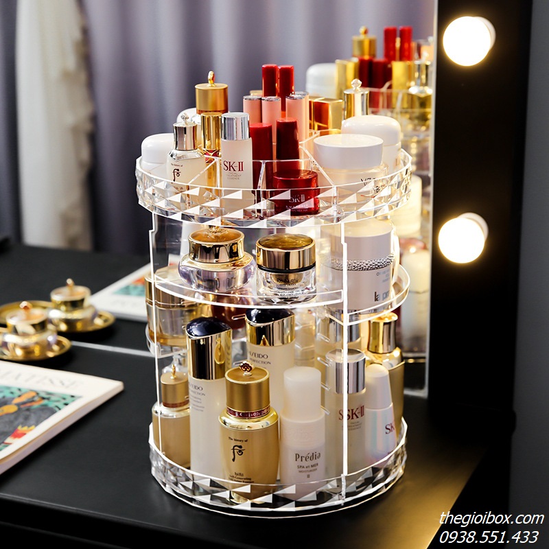 Kệ Đựng Mỹ Phẩm Xoay 360 là sản phẩm không thể thiếu cho những tín đồ yêu thích làm đẹp. Với thiết kế xoay 360 độ, bạn có thể dễ dàng tìm thấy món đồ mỹ phẩm yêu thích mà không cần phải lục lọi. Kệ này được làm từ chất liệu nhựa Acrylic dày dặn, trong suốt, mang lại vẻ sang trọng và hiện đại cho không gian trang điểm của bạn.