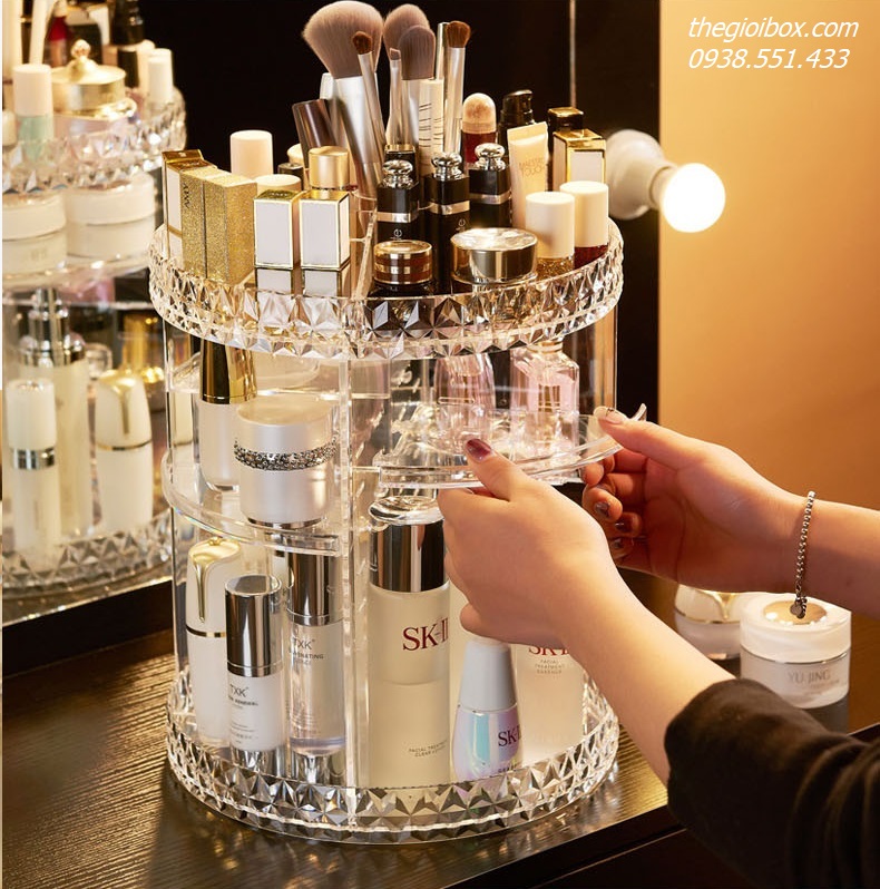 Nếu bạn đang tìm kiếm một giải pháp để tổ chức mỹ phẩm của mình một cách gọn gàng và đẹp mắt, khay đựng mỹ phẩm thông minh chính là lựa chọn hoàn hảo. Với thiết kế 360 độ độc đáo và chất liệu acrylic dày dạn, chiếc khay này không chỉ mang lại sự tiện dụng mà còn tạo nên vẻ sang trọng cho bàn trang điểm.
