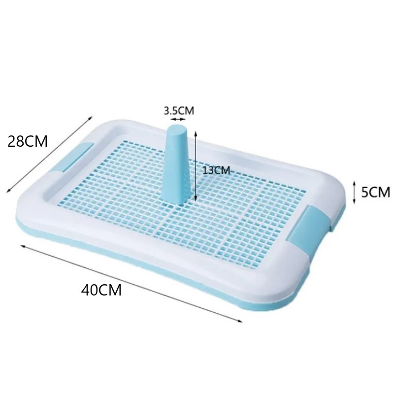 Thiết kế nhỏ gọn, kích thước đa dạng từ 40x50cm đến 49x44x15cm, phù hợp mọi giống chó lớn nhỏ, dưới 5kg hay cún lớn. Thành cao 15cm ngăn chất thải văng ra, kèm trụ đứng hoặc lưới lót chống cào xé, dễ dàng lau chùi hàng ngày.