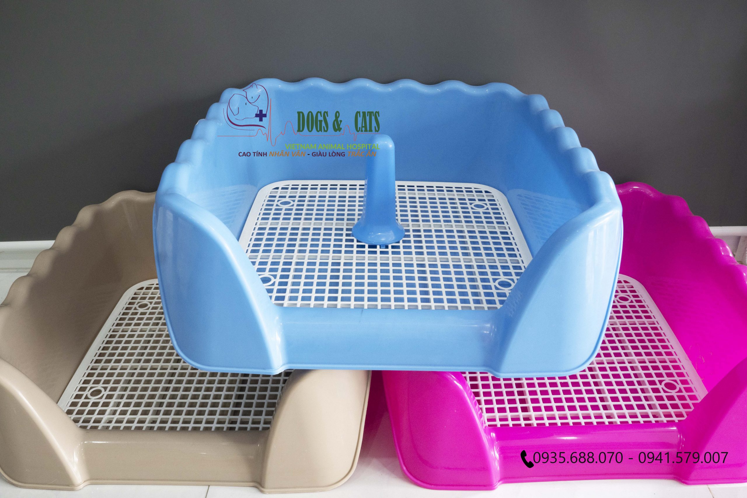 Chọn khay nhựa chất lượng, lót cát hoặc tấm thấm hút để khử mùi hiệu quả. Bạn có thể thêm lưới ở đáy để chất thải rơi xuống dưới, tránh dính chân lông cún. Đặc biệt, với chó đực, chọn loại có cọc nhựa cao để ngăn nước tiểu văng ra.