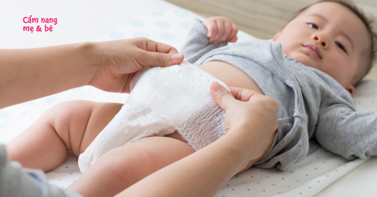 Mẹ nên đảm bảo rằng phần lưng của bỉm cao hơn bụng bé, đủ để che rốn và dính băng dán theo hướng chéo xuống. Để kiểm tra sự vừa vặn, mẹ chỉ cần đưa ngón tay vào giữa bỉm và bụng bé; nếu ngón có thể di chuyển một cách thoải mái, bỉm đã được mặc đúng cách.