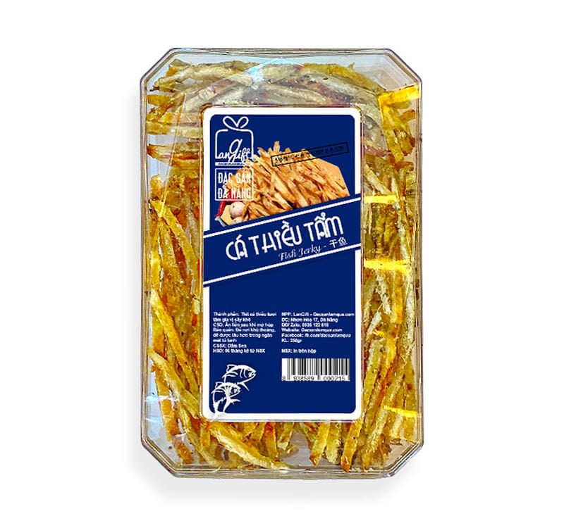 Sản phẩm được chế biến từ những phi lê cá thiều tươi, phơi đúng một nắng, tẩm gia vị vừa ăn, mang lại sự hài hòa giữa vị mặn, ngọt và một chút cay nhẹ. Món ăn tiện lợi này được xé sẵn theo dạng que, giúp bạn có thể thưởng thức ngay mà không cần phải chế biến thêm.