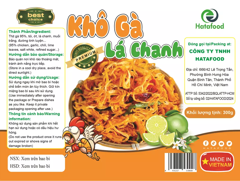 Với chất lượng đảm bảo, tem nhãn đầy đủ và xuất xứ rõ ràng, bạn hoàn toàn yên tâm khi lựa chọn sản phẩm của chúng tôi. Tại Hatafood, mỗi miếng khô gà không chỉ là món ăn mà còn là sự trải nghiệm hương vị tuyệt vời! Hãy liên hệ với chúng tôi qua Zalo để được tư vấn và đặt hàng ngay hôm nay.