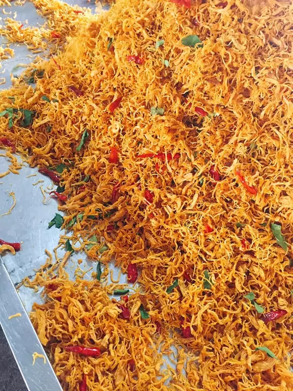 Khô gà lá chanh là một món ăn vặt nổi tiếng và hấp dẫn tại TP.HCM, rất được lòng người dân nơi đây. Với thành phần chính là thịt ức gà tươi, nguồn gốc từ gà sạch, món ăn này không chỉ thơm ngon mà còn đảm bảo an toàn vệ sinh thực phẩm. Gà được chế biến khéo léo, kết hợp với hương thơm đặc trưng của lá chanh, tạo nên một trải nghiệm ẩm thực khó quên.