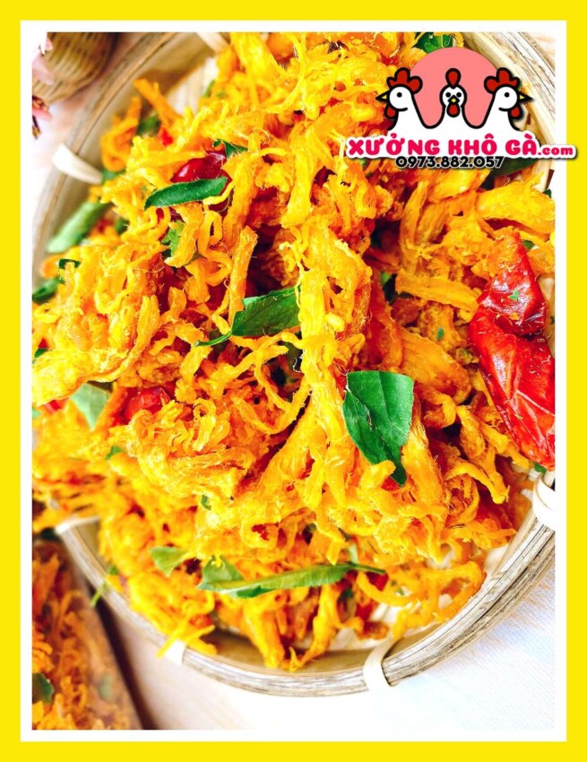 Khô gà lá chanh là một món ăn vặt quen thuộc mà nhiều người yêu thích nhờ hương vị thơm ngon, giòn tan. Được làm từ thịt gà tươi, qua quy trình tẩm ướp gia vị và sấy khô, khô gà mang đến cho thực khách những trải nghiệm ẩm thực đầy hấp dẫn. Với vị cay nhẹ và hương thơm đặc trưng từ lá chanh, món ăn này chính là lựa chọn tuyệt vời cho những buổi nhậu, xem phim hay đơn giản là một cách để thưởng thức cùng bạn bè.