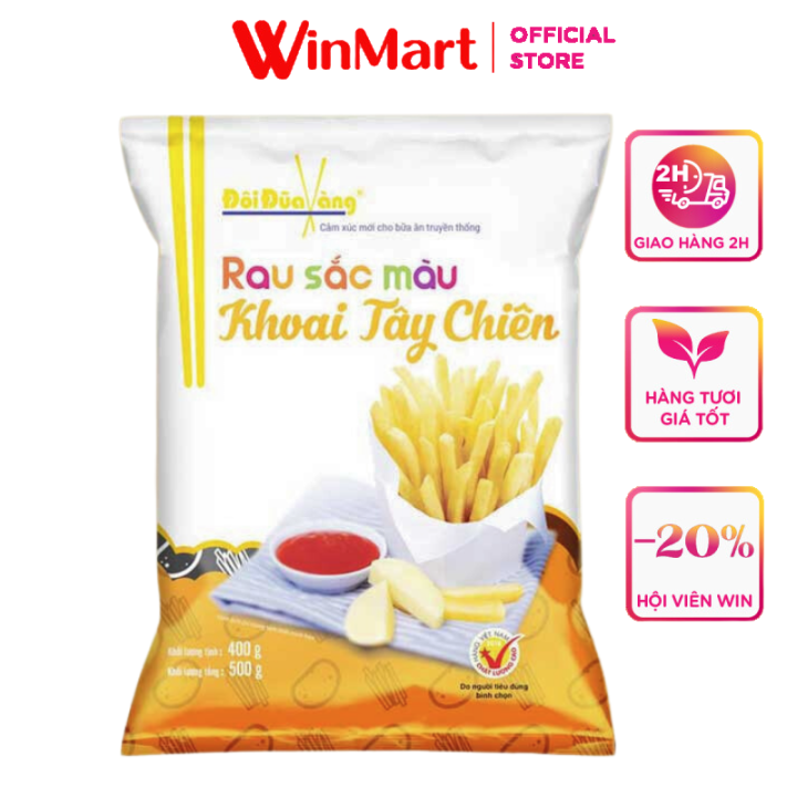 Nếu bạn đang tìm kiếm khoai tây chiên đông lạnh chất lượng, hãy ghé Vinmart để khám phá những lựa chọn tuyệt vời. Một trong những sản phẩm nổi bật là khoai tây chiên đông lạnh Đôi Đũa Vàng, gói 500g vừa ngon lại dễ chế biến. Chỉ cần một chút thời gian, bạn đã có ngay một đĩa khoai tây chiên giòn tan, thích hợp để ăn vặt hay làm món phụ trong bữa ăn.