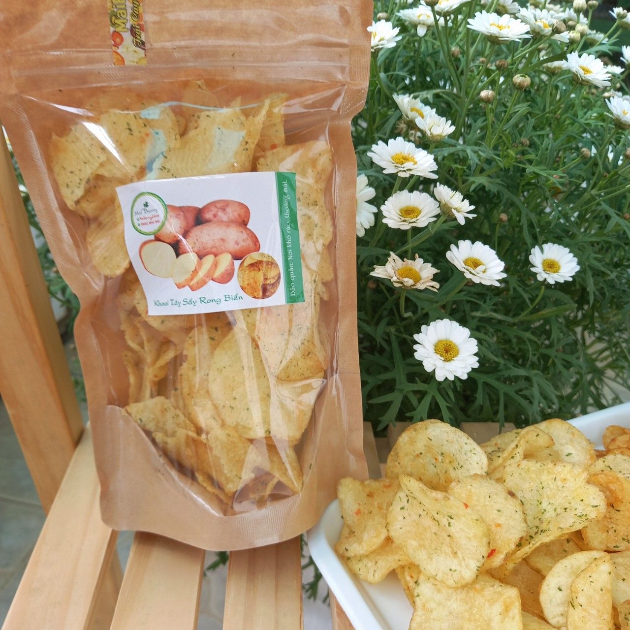 Đặc biệt, khoai tây sấy không chỉ ngon mà còn rất bổ dưỡng. Điển hình như khoai tây sấy rong biển, giàu dinh dưỡng và cung cấp nhiều khoáng chất cùng vi chất cần thiết cho sức khỏe như iodine, sắt và vitamin B12. Mỗi miếng khoai được sấy giòn nhưng vẫn giữ được vị thơm béo đặc trưng, tạo nên món ăn vặt hoàn hảo không dầu mỡ.