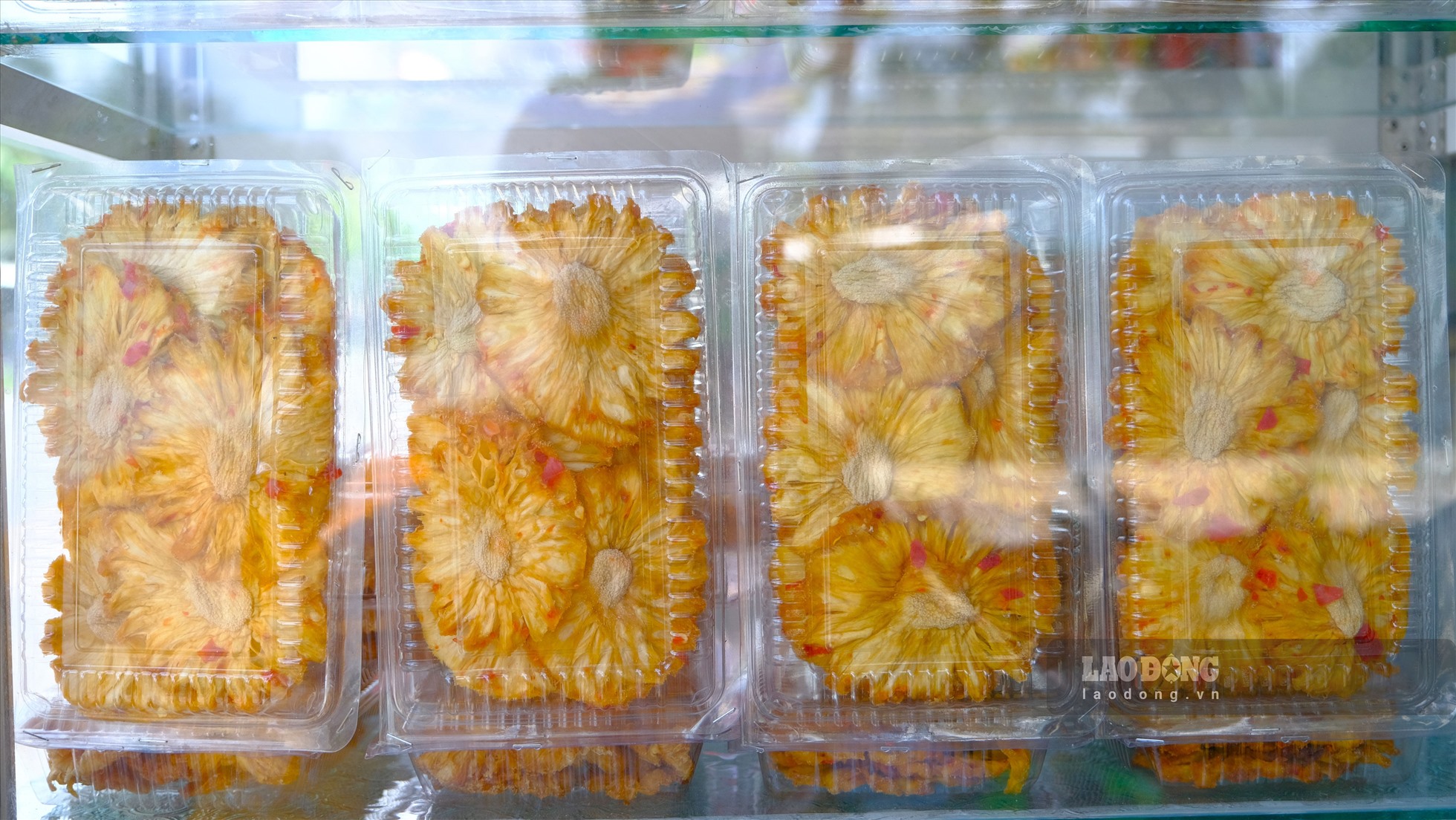 Được sản xuất từ trái khóm Tắc Cậu vùng Kiên Giang, khóm sấy được chế biến với công nghệ sấy lạnh, giữ nguyên dinh dưỡng và độ mềm dẻo vừa phải. Có thể nói rằng, một trong những điểm cộng lớn khiến sản phẩm này được ưa chuộng là mức giá chỉ 62.000 đồng cho 500 gram, quá rẻ so với thị trường.