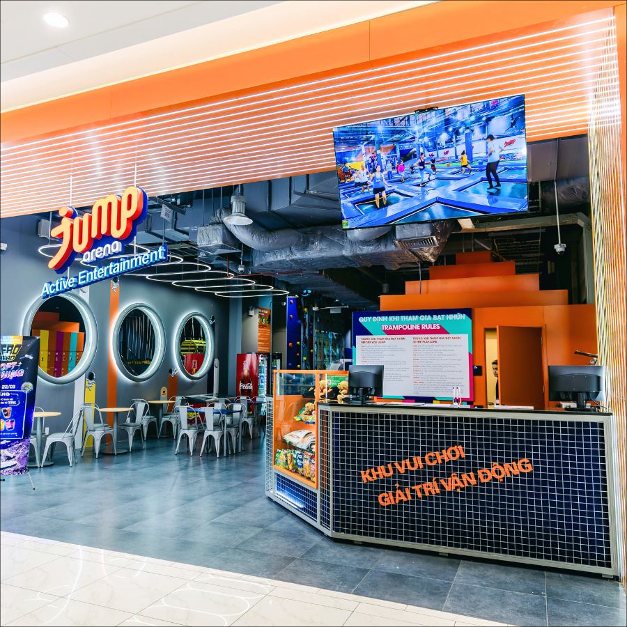Ngoài Kidzooona, Jump Arena cũng là một khu vực không thể bỏ qua. Với những trò chơi vận động như nhảy trampoline, leo núi hay bóng rổ trên không, Jump Arena mang đến cho trẻ em những trải nghiệm sảng khoái và đầy thử thách. Các bé có thể thỏa sức phấn khích và rèn luyện thể lực trong không gian rộng rãi, hiện đại.