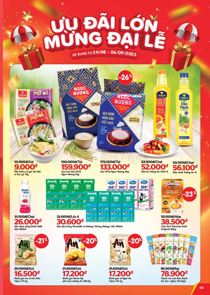 Đừng quên rằng VinMart còn có chương trình đổi điểm VinID để nhận ưu đãi lên đến 500.000đ. Với sự đa dạng trong hàng hóa và giá cả ổn định, VinMart thực sự là điểm đến lý tưởng cho cả gia đình bạn. Hãy nhanh chân đến siêu thị để không bỏ lỡ những chương trình khuyến mãi thú vị này nhé!