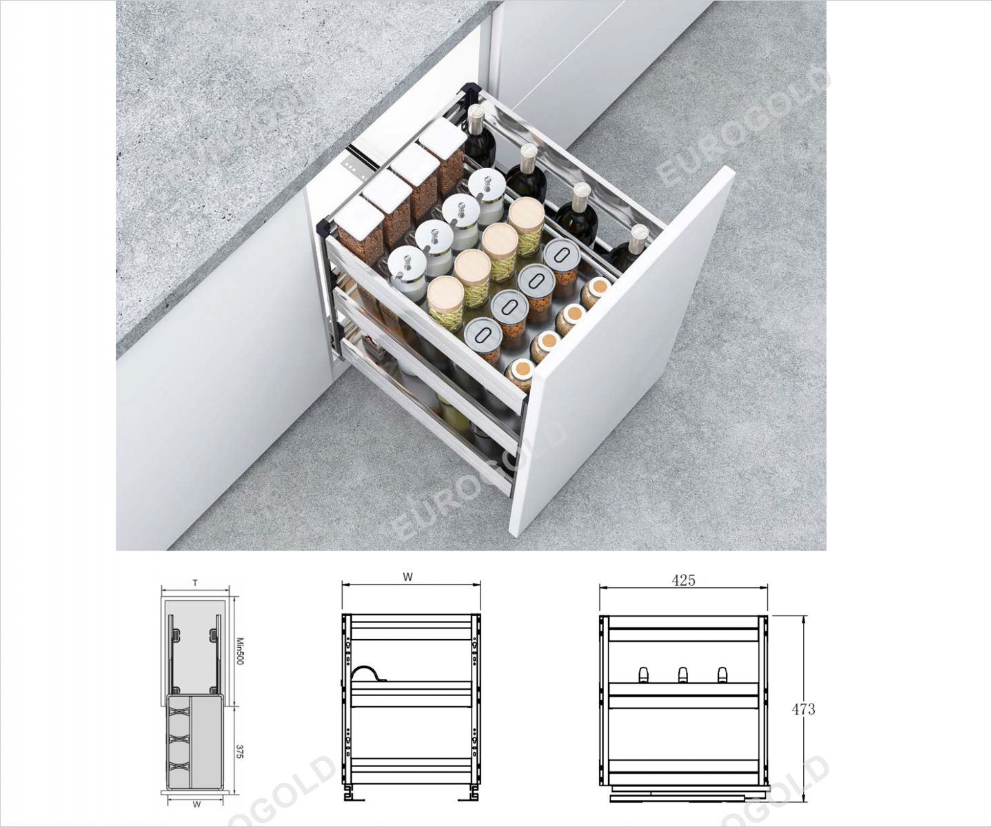 Kệ gia vị đa năng là một phần không thể thiếu trong gian bếp của mỗi gia đình. Với kích thước 400mm, kệ gia vị sẽ được lắp đặt cho không gian tủ có kích thước thông thủy là W360*D475*H455 (rộng*sâu*cao), phục vụ việc bảo quản và lưu trữ gia vị hiệu quả.