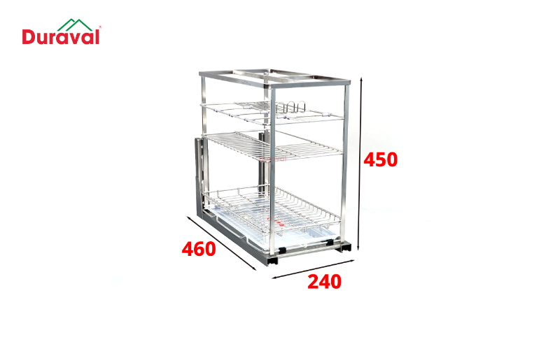 Đối với những gian bếp rộng rãi hơn, kệ 350mm hoặc 400mm sẽ giúp bạn lưu trữ nhiều chai lọ gia vị hơn mà vẫn giữ được sự gọn gàng. Những kệ này thường được làm từ khung thép Carbon chống han rỉ, đảm bảo độ bền cao và khả năng chịu tải lên tới 100kg.