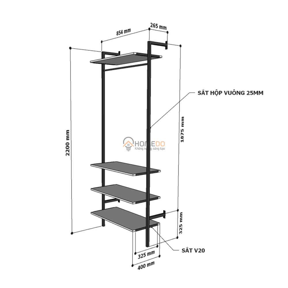 Khi chọn kệ treo quần áo, kích thước là một yếu tố quan trọng không thể bỏ qua. Chiều cao tiêu chuẩn thường từ 1.8m trở lên, phổ biến nhất là 2m, 2.2m và 2.4m. Kích thước này giúp việc trưng bày quần áo trở nên hợp lý và thuận tiện hơn. Để treo áo nằm ngang một cách thoải mái, chiều rộng kệ nên đạt ít nhất 550mm, và chiều cao giữa các đợt kệ cho đồ xếp ít nhất là 250mm.