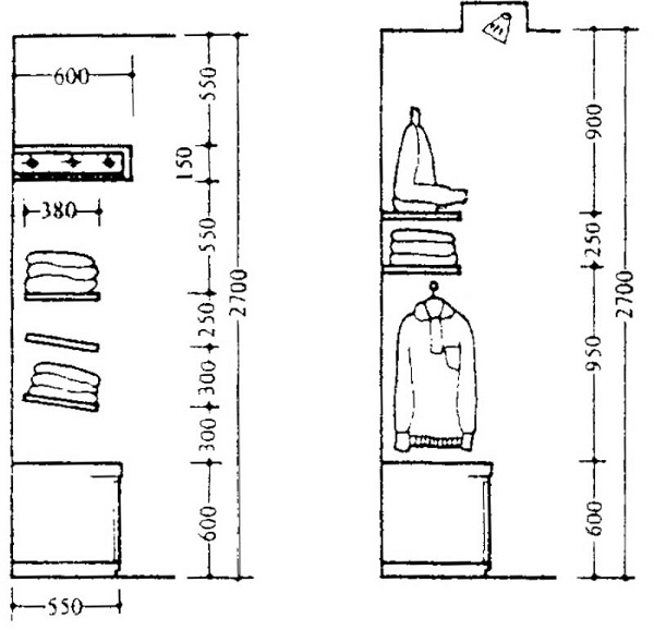 Chiều rộng của kệ khoảng 60 cm là sự lựa chọn hợp lý, đảm bảo quần áo được treo gọn gàng mà không bị chèn ép. Nếu bạn muốn treo áo ngang, chiều rộng tối thiểu nên là 550 cm, trong khi khoảng trống giữa các đợt kệ để đồ xếp tối thiểu là 250 cm.