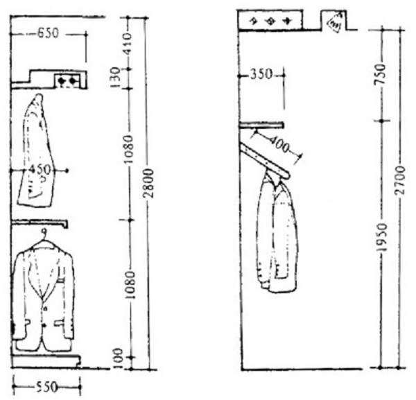 Nếu bạn đang tìm kiếm một kệ treo quần áo sát tường, chiều rộng khoảng 400-550mm và chiều cao từ 1.5m đến 2.4m là những kích thước phù hợp. Đừng quên lưu ý đến kích thước các ngăn tủ bên trong; chiều cao khoảng 20-25 cm và rộng 90-100 cm sẽ giúp bạn dễ dàng gấp và sắp xếp quần áo một cách hiệu quả.