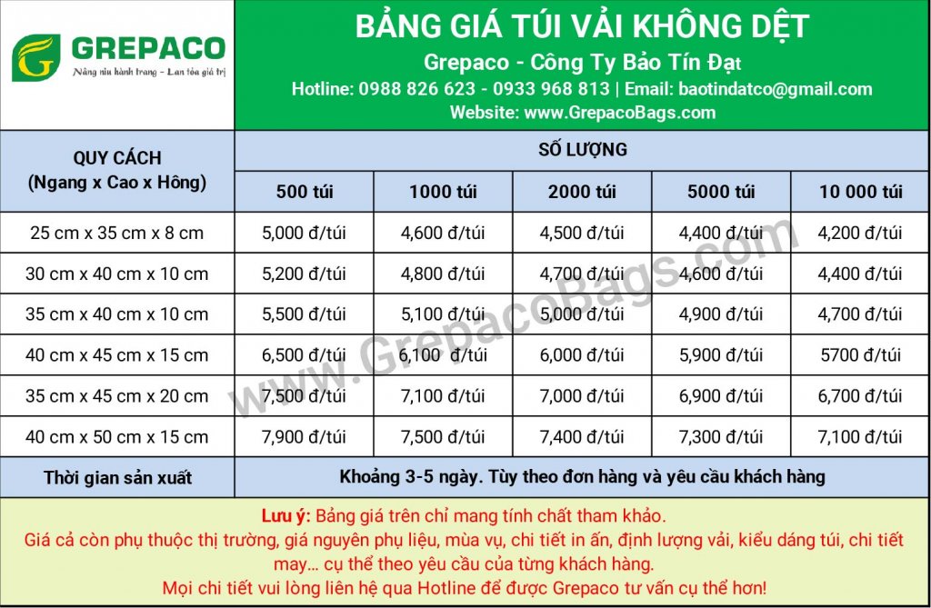 Khi nói đến túi vải không dệt, kích thước là yếu tố quan trọng để đáp ứng nhu cầu sử dụng của người tiêu dùng. Hiện nay, trên thị trường có nhiều kích thước phổ biến như 35x45x18 cm, 40x50x20 cm và 45x60x25 cm. Những kích thước này rất linh hoạt, phù hợp cho nhiều mục đích khác nhau, từ đi chợ cho đến đi du lịch.