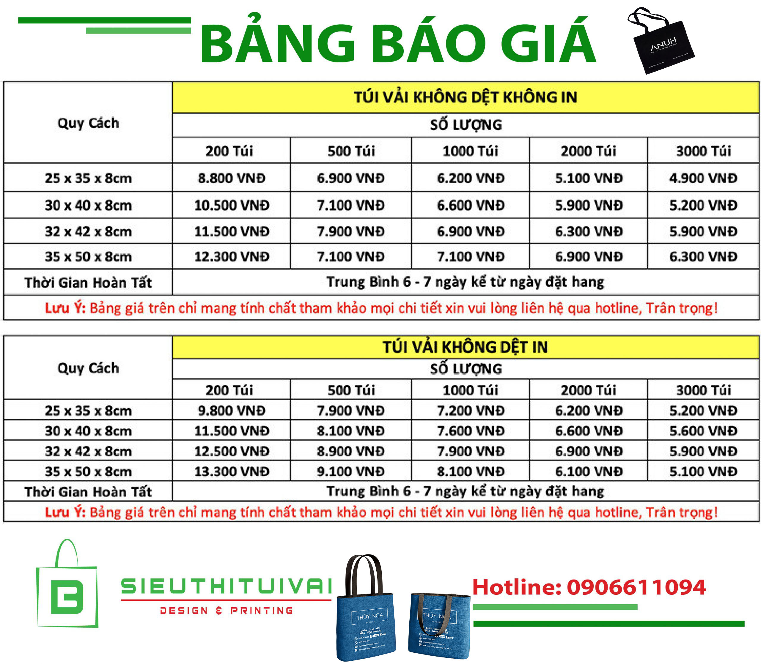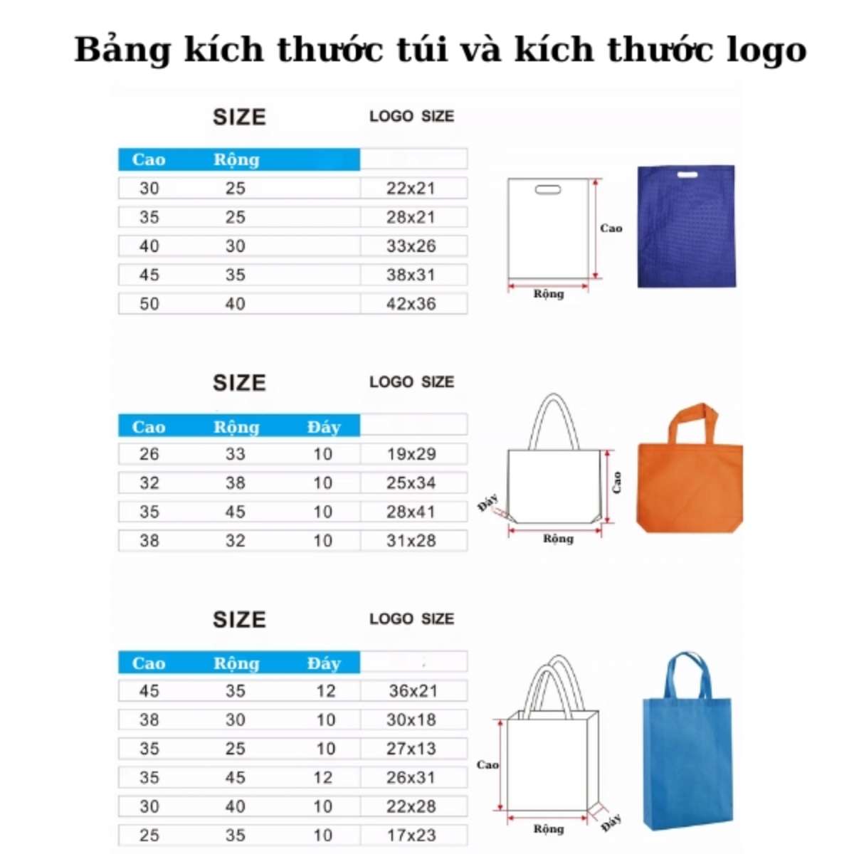 Khi nói đến kích thước đặt may túi vải không dệt, bạn sẽ thấy rằng chúng rất đa dạng, thường thấy nhất là các kích thước như 35x45x18 cm, 40x50x20 cm, và 45x60x25 cm. Điều này mang lại sự linh hoạt cho người sử dụng, phù hợp với nhiều mục đích khác nhau từ việc đi chợ, đựng sách, cho đến các sản phẩm quà tặng.