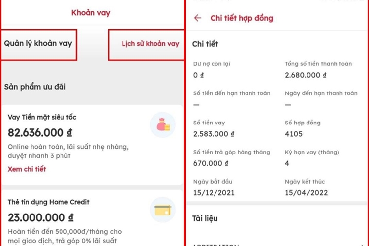 Ngoài ra, nếu bạn thường xuyên sử dụng smartphone, bạn cũng có thể tra cứu khoản vay trực tiếp trên ứng dụng Home Credit. Sau khi đăng nhập, chỉ cần lựa chọn hợp đồng mà bạn muốn xem, bạn sẽ nhanh chóng nhận được thông tin về tình trạng khoản vay của mình. Điều này rất tiện lợi và dễ dàng cho những ai không thích gọi điện.