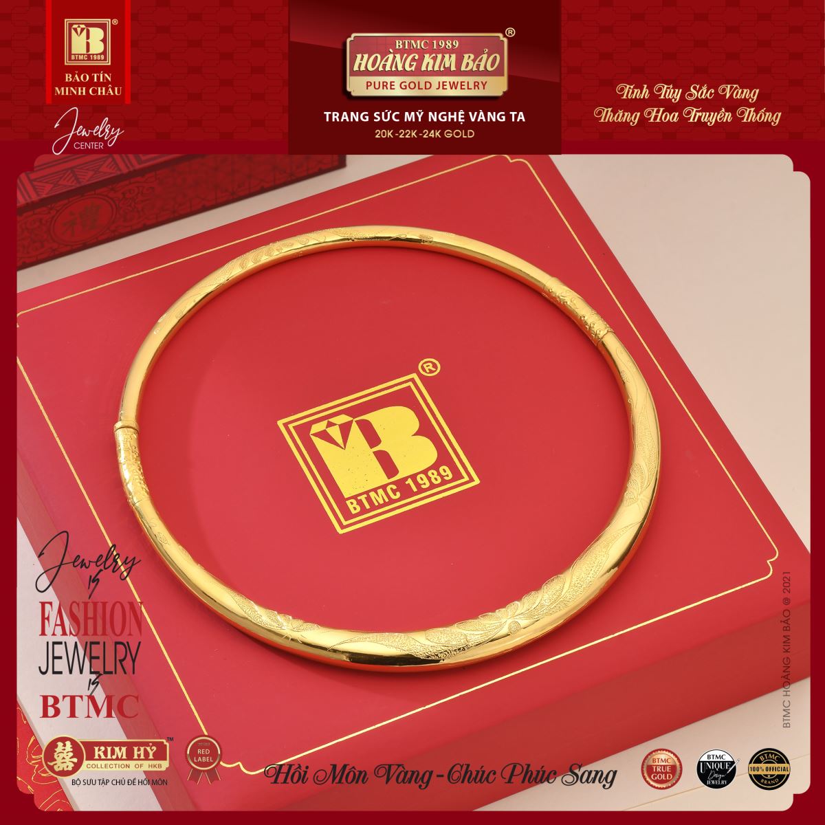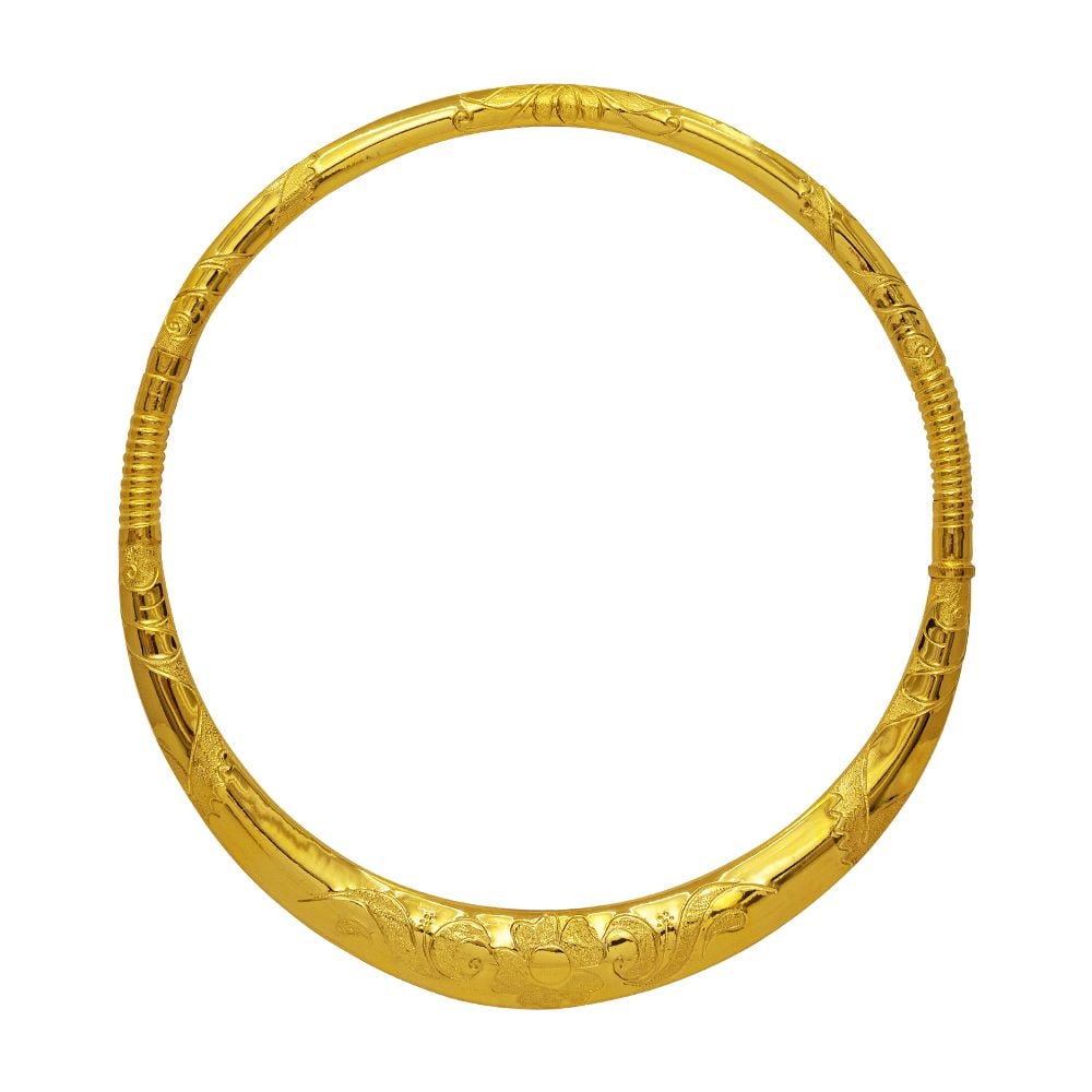 Kiềng vàng 5 chỉ 9999 là sản phẩm trang sức được chế tác từ vàng 24K nguyên chất với độ tinh khiết lên đến 99,99%. Trọng lượng 5 chỉ tương đương khoảng 18,75 gram, tạo nên chiếc kiềng có kích thước vừa phải, phù hợp với nhiều đối tượng sử dụng. Kiềng vàng 5 chỉ thường có thiết kế tinh xảo, có thể là kiểu trơn hoặc chạm khắc hoa văn cầu kỳ, mang vẻ đẹp sang trọng và quý phái.