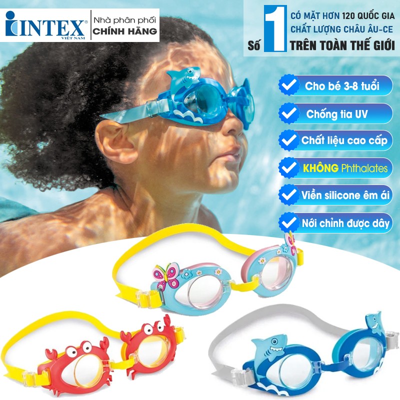 Kính bơi INTEX là một sản phẩm tuyệt vời dành cho các bé từ 3 đến 8 tuổi, giúp bảo vệ đôi mắt của trẻ khi bơi lội. Với thiết kế đáng yêu và màu sắc hấp dẫn, những chiếc kính này không chỉ mang lại sự an toàn mà còn tạo hứng thú cho trẻ nhỏ khi vui chơi trong nước.