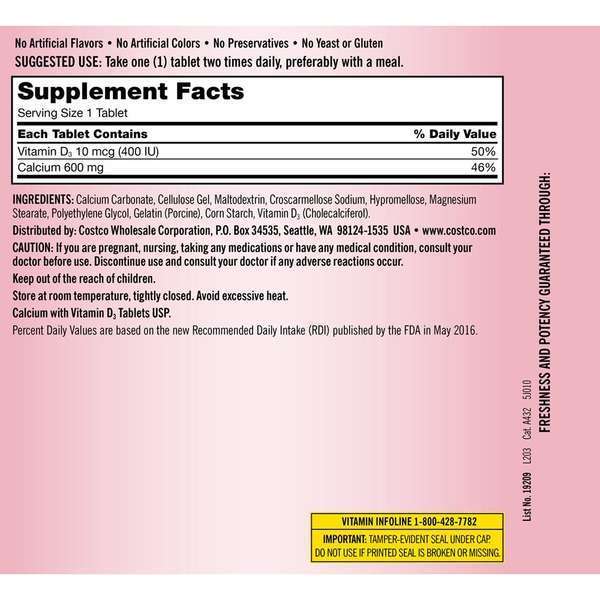 Thành Phần Kirkland Calcium 600mg With Vitamin D3
