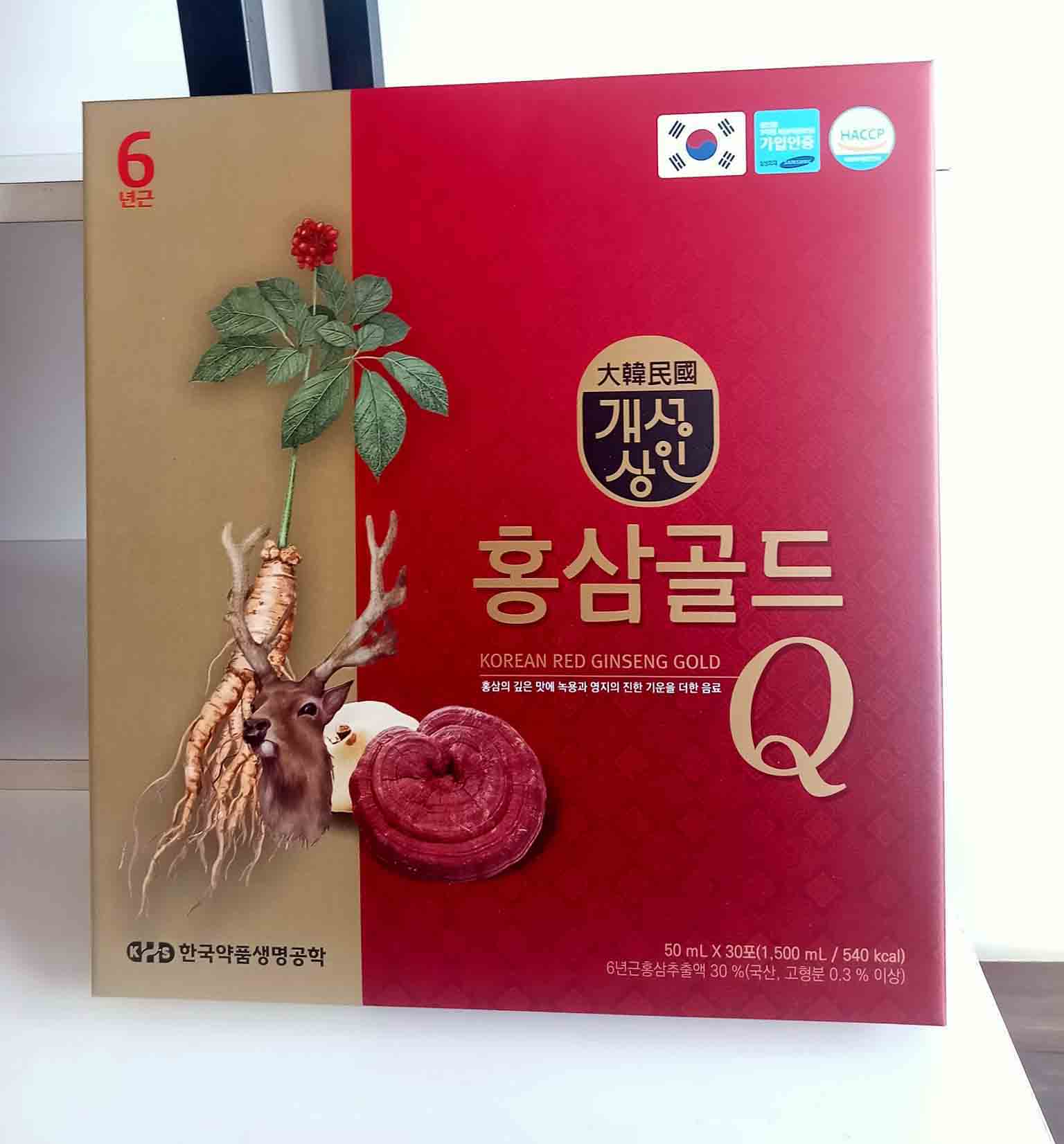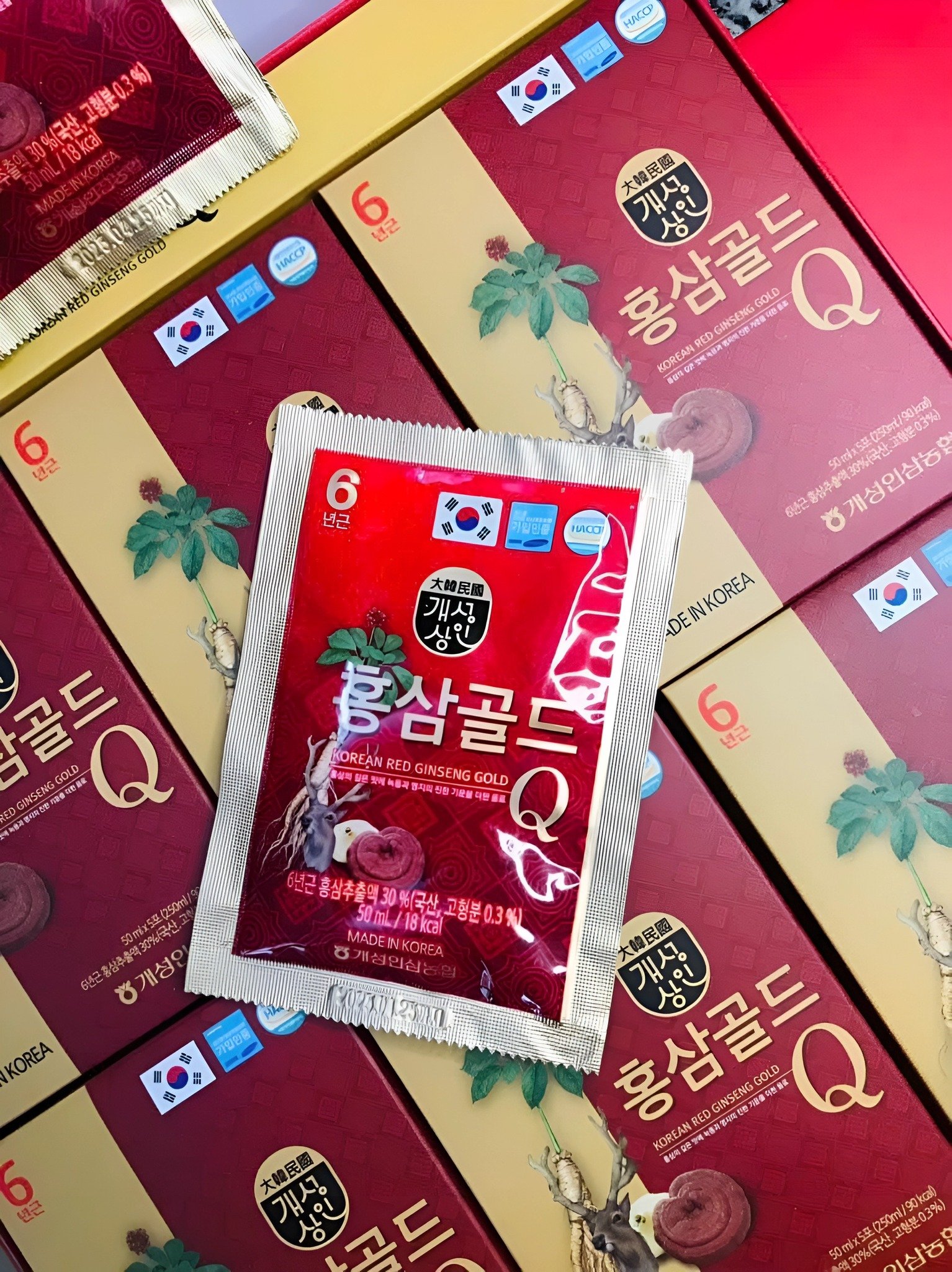 Korean Red Ginseng Gold Q, với chiết xuất từ hồng sâm 6 năm tuổi, nhung hươu và nhiều dưỡng chất quý giá, được biết đến với khả năng bồi bổ sức khỏe, tăng cường sức đề kháng, ổn định huyết áp. Đây chắc chắn là sản phẩm giúp bạn cảm thấy khỏe mạnh và tràn đầy năng lượng hơn.