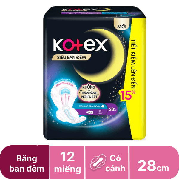 Trong những ngày “đèn đỏ”, việc lựa chọn loại băng vệ sinh phù hợp là điều mà bất kỳ chị em nào cũng quan tâm, đặc biệt là vào ban đêm – thời điểm cần cảm giác an tâm và thoải mái tuyệt đối. Kotex Ban Đêm với thiết kế đa dạng như siêu thấm, siêu mỏng, có cánh, chống tràn… cùng chiều dài lý tưởng 28cm chắc chắn sẽ đáp ứng tốt nhu cầu bảo vệ của phái đẹp. Bài viết dưới đây sẽ giúp bạn hiểu rõ hơn về các dòng băng vệ sinh Kotex ban đêm phổ biến, giá cả cũng như địa chỉ mua hàng uy tín, để bạn tự tin tận hưởng giấc ngủ ngon suốt đêm dài.