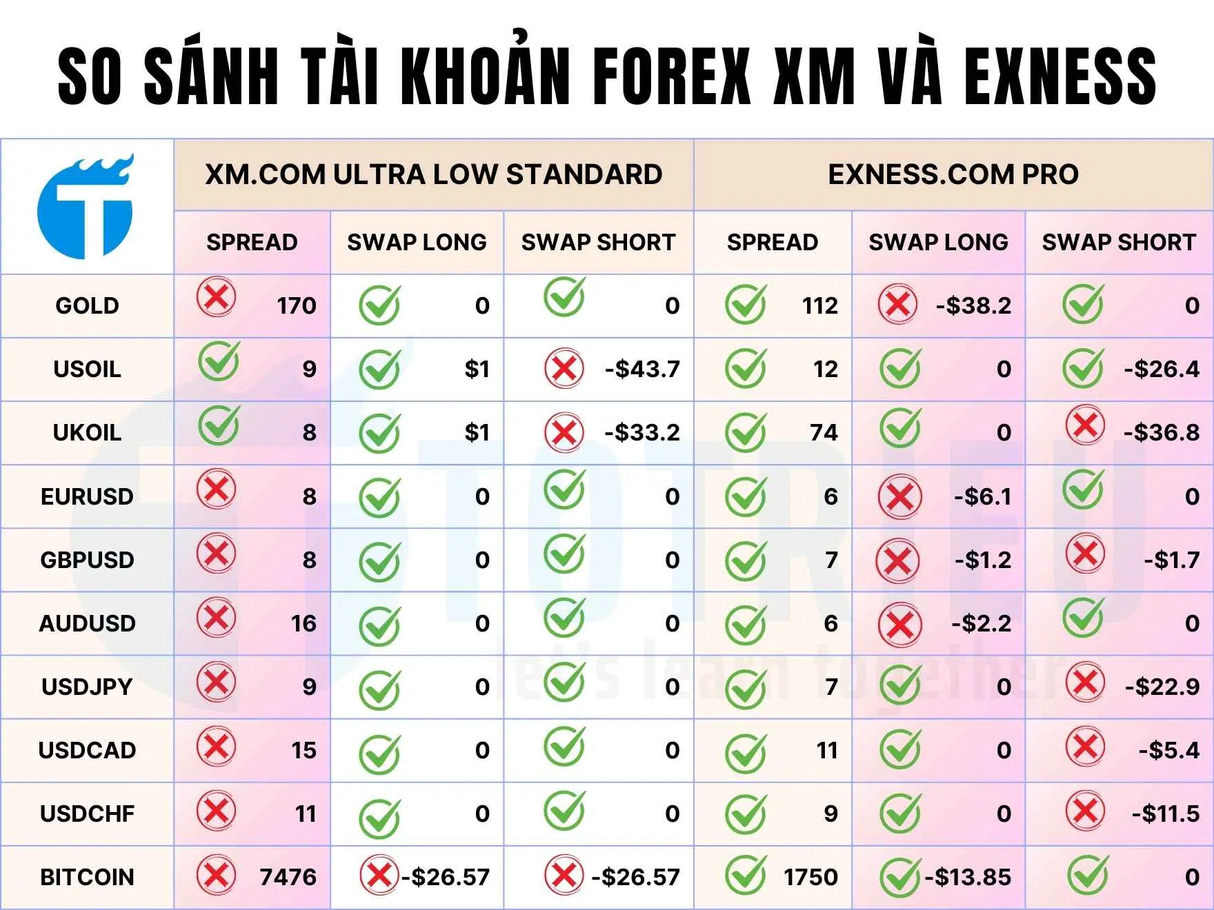 Các cặp tiền có spread thấp thường là những cặp tiền tệ phổ biến và được giao dịch nhiều trên thị trường Forex, ví dụ như EUR/USD, USD/JPY, GBP/USD hay USD/CHF. Spread thấp nghĩa là khoảng cách giữa giá mua (Bid) và giá bán (Ask) rất nhỏ, điều này giúp giảm chi phí giao dịch cho nhà đầu tư. Khi spread thấp, bạn sẽ dễ dàng mở và đóng lệnh với mức phí thấp, từ đó tăng khả năng kiếm lời, đặc biệt với những giao dịch ngắn hạn hoặc lướt sóng.