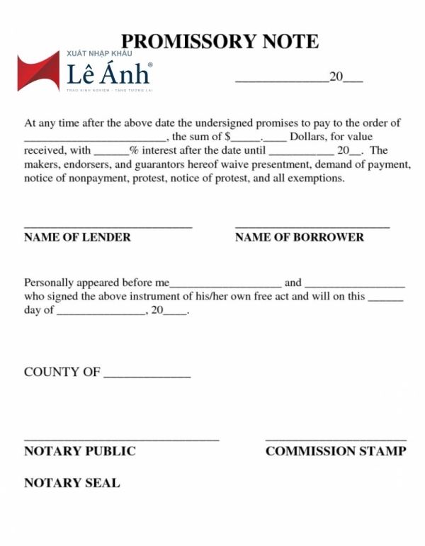 Hình ảnh minh họa phù hợp: một tờ giấy có nội dung cam kết, chữ ký, con dấu và cây bút (hoặc kèm tiền/biên lai). Từ liên quan: IOU, bill of exchange (hối phiếu), treasury bill (kỳ phiếu kho bạc), promissory note, debtor (con nợ), creditor (chủ nợ).