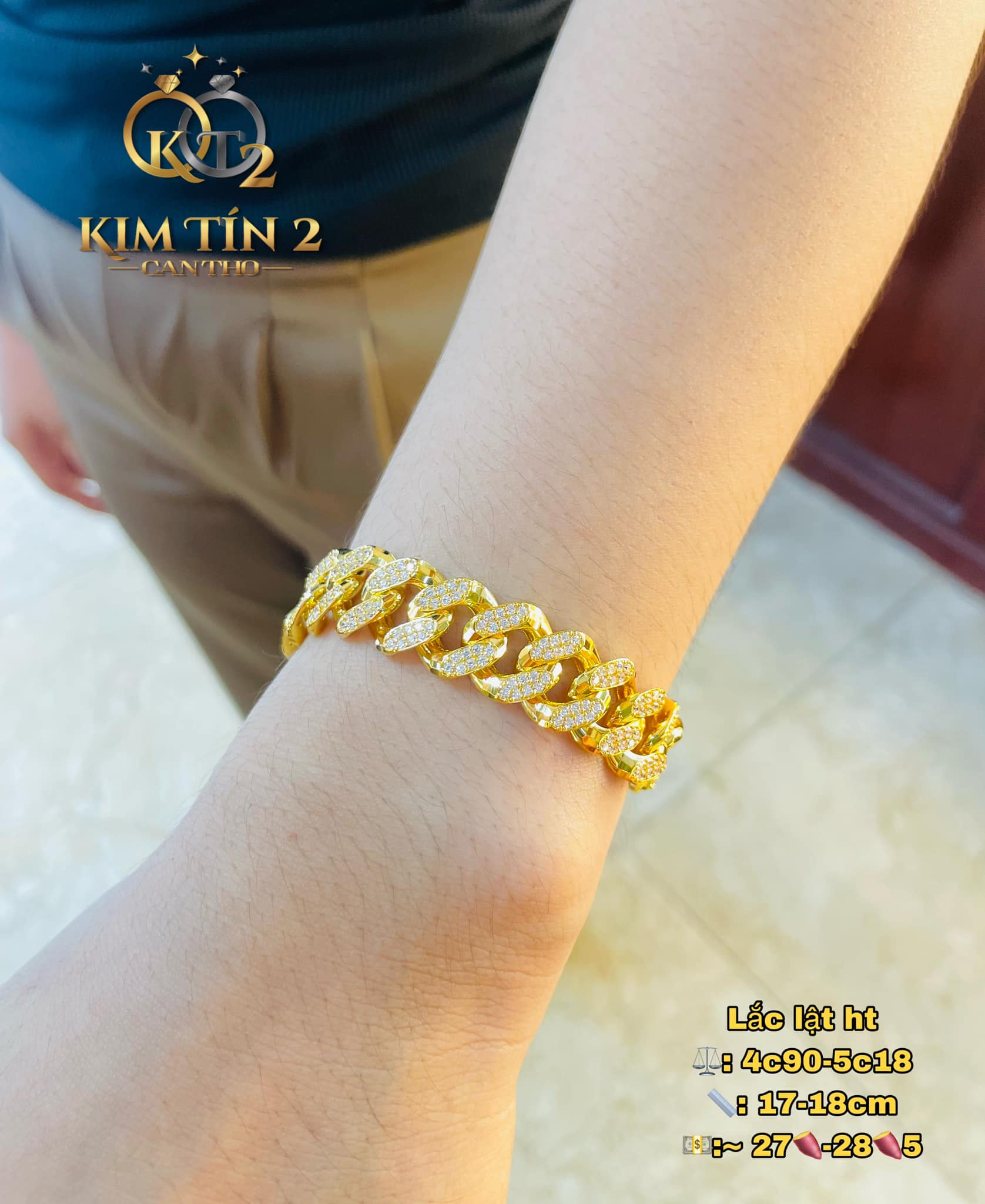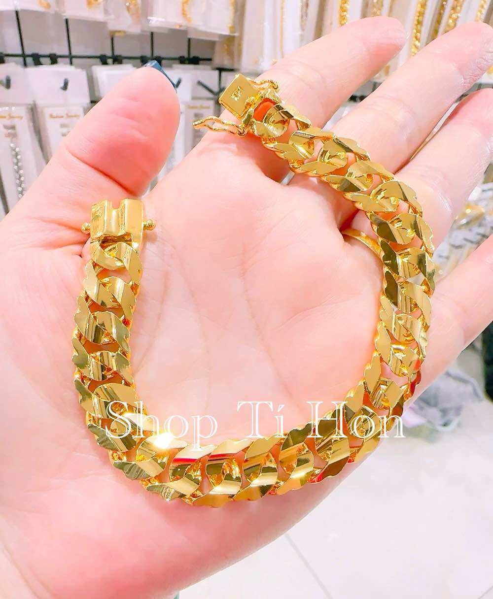 Vàng 18K có độ tinh khiết khoảng 75%, vừa đảm bảo độ bền lại vẫn giữ được vẻ sáng bóng, phù hợp với các thiết kế lắc tay nam vừa sang trọng vừa cá tính. Với trọng lượng 5 chỉ, đây là lựa chọn phổ biến vì không quá nặng, dễ đeo mà vẫn tạo điểm nhấn nổi bật cho phong cách của phái mạnh.