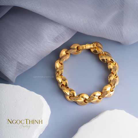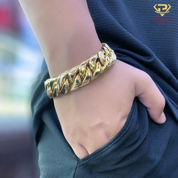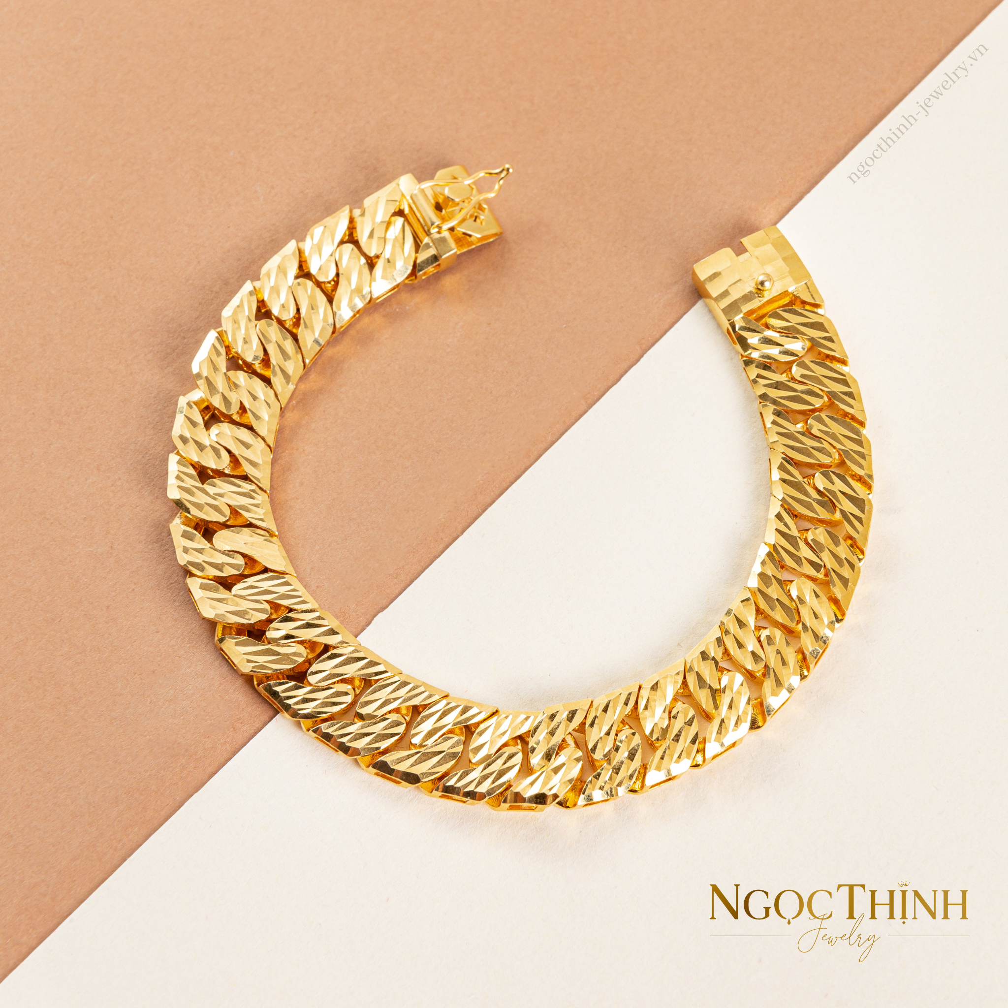 Ngoài ra, các thiết kế như lắc tay móc xích hay mắt xích to cũng rất được ưa chuộng bởi sự đơn giản nhưng không kém phần sang trọng, phù hợp với nhiều phong cách thời trang khác nhau. Lắc tay vàng 24K không chỉ là phụ kiện mà còn là biểu tượng của sự tự tin và phong cách riêng của người đàn ông hiện đại.