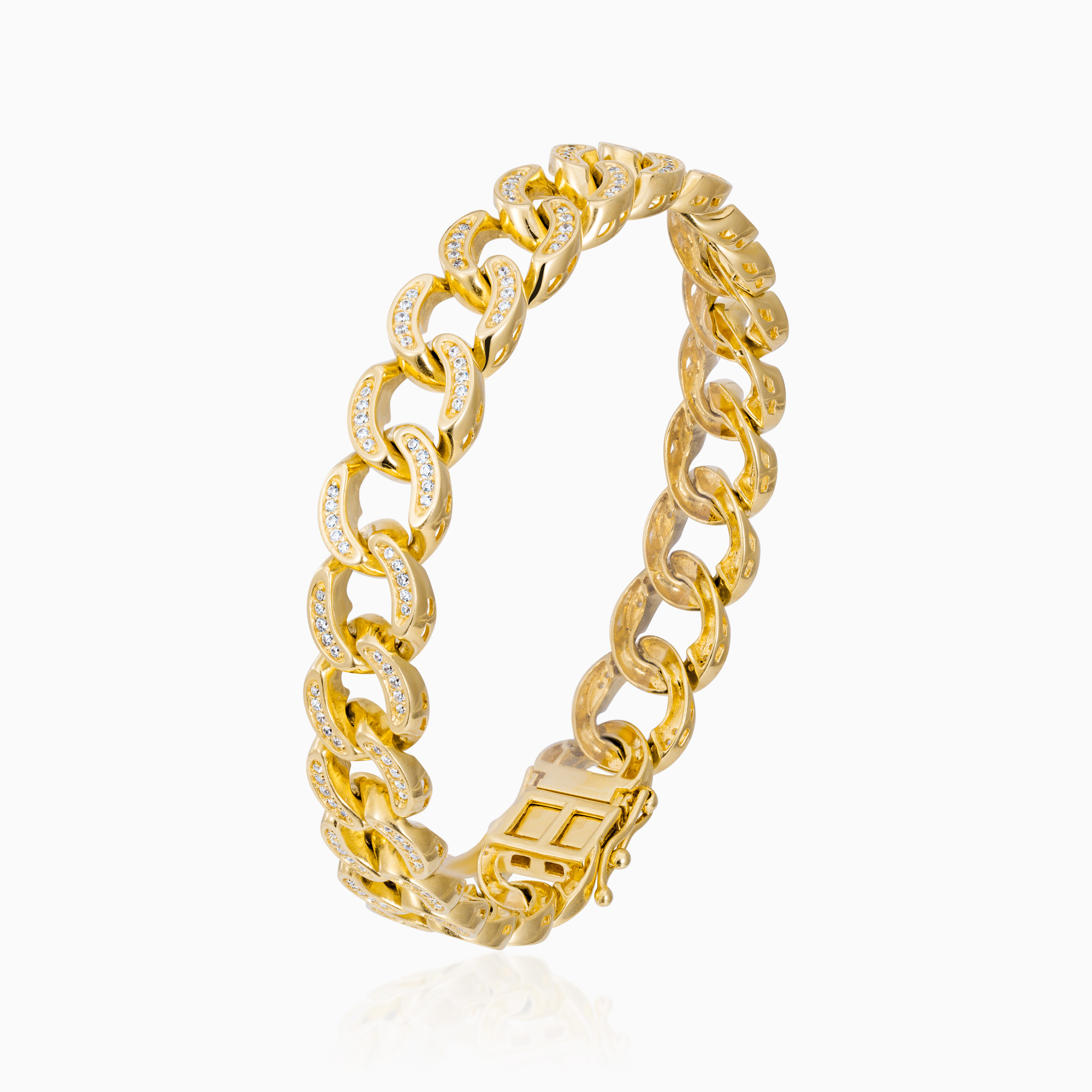 Thiết kế lắc tay vàng 18K dành cho nam thường có kiểu dáng to, dày hơn so với nữ, mang phong cách nam tính, mạnh mẽ. Một số mẫu còn được điểm xuyết đá quý Swarovski hoặc họa tiết độc đáo như hình chiến mã, tạo điểm nhấn thu hút và thể hiện cá tính riêng biệt cho người đeo. Ngoài ra, kiểu dáng lắc tay mô phỏng dây đồng hồ cũng rất được ưa chuộng, vừa tinh tế vừa sang trọng, phù hợp với quý ông yêu thích phong cách lịch lãm.