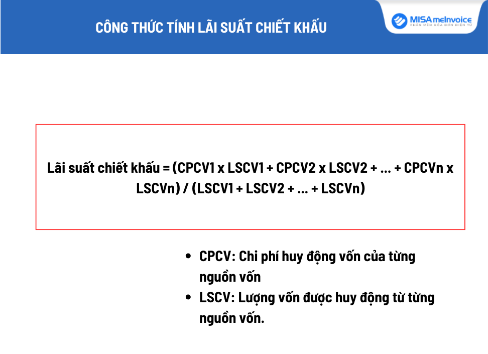 Lãi suất chiết khấu là một khái niệm quan trọng trong tài chính, thường dùng để đánh giá khả năng sinh lời của các khoản đầu tư. Công thức tính lãi suất chiết khấu rất đơn giản: bạn chỉ cần lấy tổng lợi nhuận thu được chia cho số tiền đã đầu tư để huy động vốn. Điều này giúp các doanh nghiệp xác định được mức chi phí cần thiết để huy động vốn và so sánh với lợi nhuận đạt được.