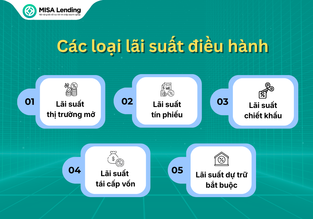 Lãi suất điều hành được quy định và điều chỉnh bởi NHNN dựa trên nhiều yếu tố như tỷ trọng sử dụng vốn và tốc độ tăng trưởng kinh tế. Đặc biệt, lãi suất này bao gồm năm loại lãi suất khác nhau, từ đó tạo thành một bộ công cụ giúp quản lý lượng tiền tệ trong nền kinh tế. Ví dụ, lãi suất thả nổi sẽ thay đổi linh hoạt theo các chỉ số thị trường, giúp phản ánh đúng tình hình tài chính hiện tại.