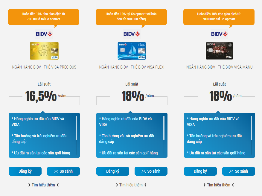 Lãi suất thẻ tín dụng BIDV minh bạch rõ ràng
