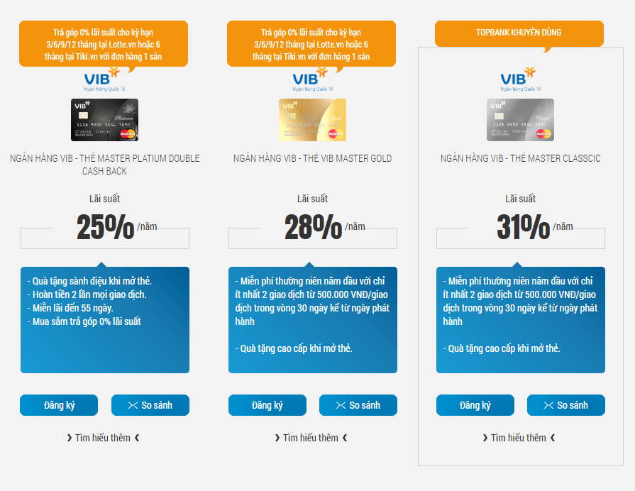 Ngoài ra, chương trình trả góp với lãi suất 0% của VIB cũng rất hợp lý, cho phép bạn lựa chọn kỳ hạn linh hoạt từ 3 đến 36 tháng. Nếu bạn là khách hàng VIP, thậm chí còn có cơ hội được hưởng lãi suất cực kỳ ưu đãi, chỉ 9,9%/năm. Chính vì vậy, VIB thực sự là một lựa chọn tốt cho những ai đang tìm kiếm thẻ tín dụng tiện lợi và mang lại nhiều lợi ích.