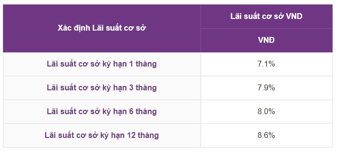 Lãi suất cơ sở tại TPBank hiện tại rất hấp dẫn với các kỳ hạn khác nhau, phục vụ nhu cầu vay vốn của khách hàng cá nhân. Cụ thể, lãi suất cơ sở cho khoản vay kỳ hạn 1 tháng là 6,9%/năm, trong khi đó, cho kỳ hạn 3 tháng, 6 tháng, và 12 tháng đều có mức lãi suất cố định là 8,35%/năm. Điều này tạo ra sự linh hoạt cho khách hàng khi lựa chọn thời gian vay phù hợp với khả năng tài chính của mình.