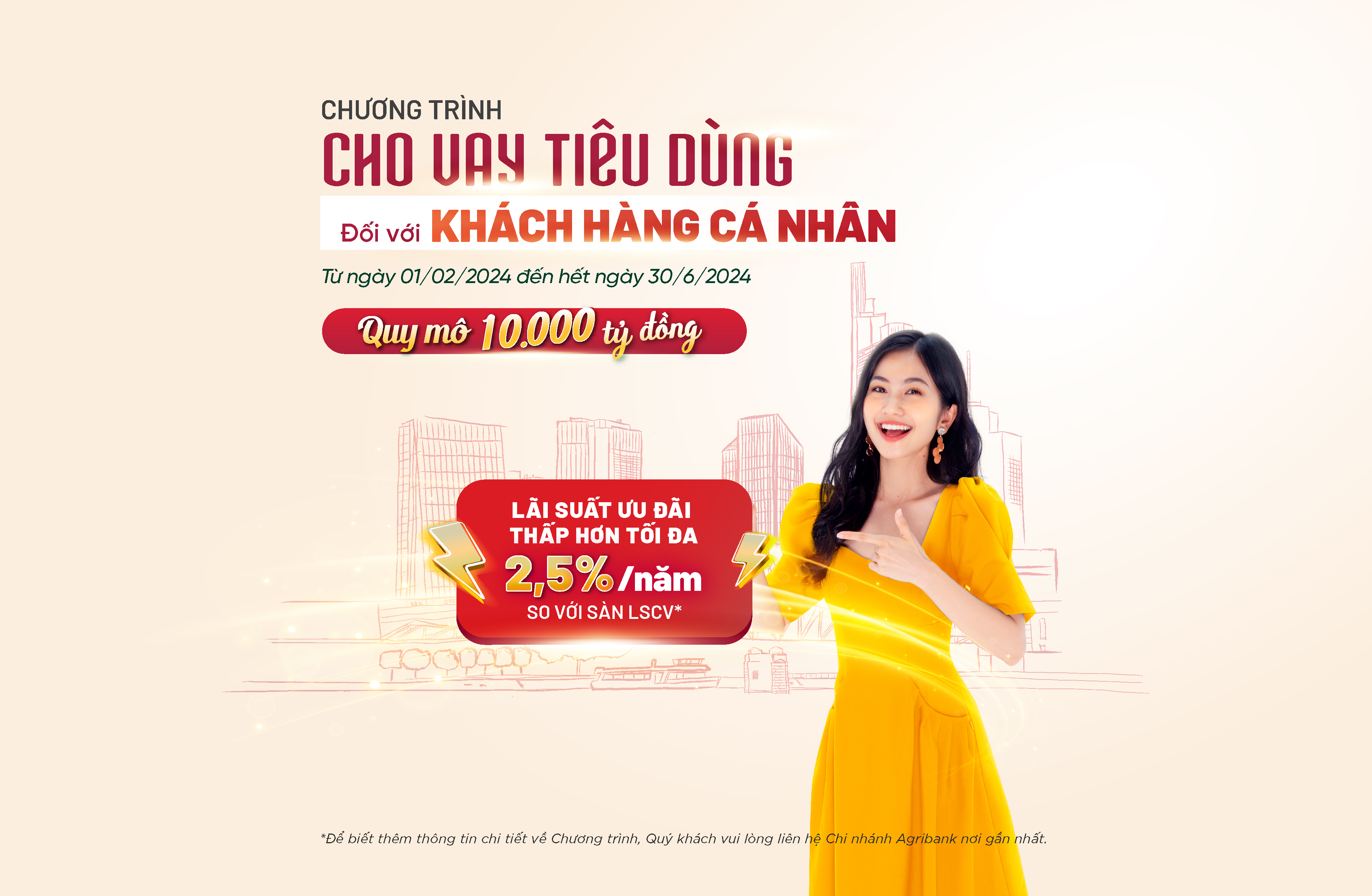 Đối với khách hàng cá nhân, ngân hàng cũng đưa ra các gói vay với lãi suất cạnh tranh, chỉ từ 6,99%/năm hoặc 7,99%/năm trong 6 tháng đầu đối với kỳ hạn dưới 2 năm, và từ 9%/năm trong 12 tháng đầu cho kỳ hạn trên 2 năm.